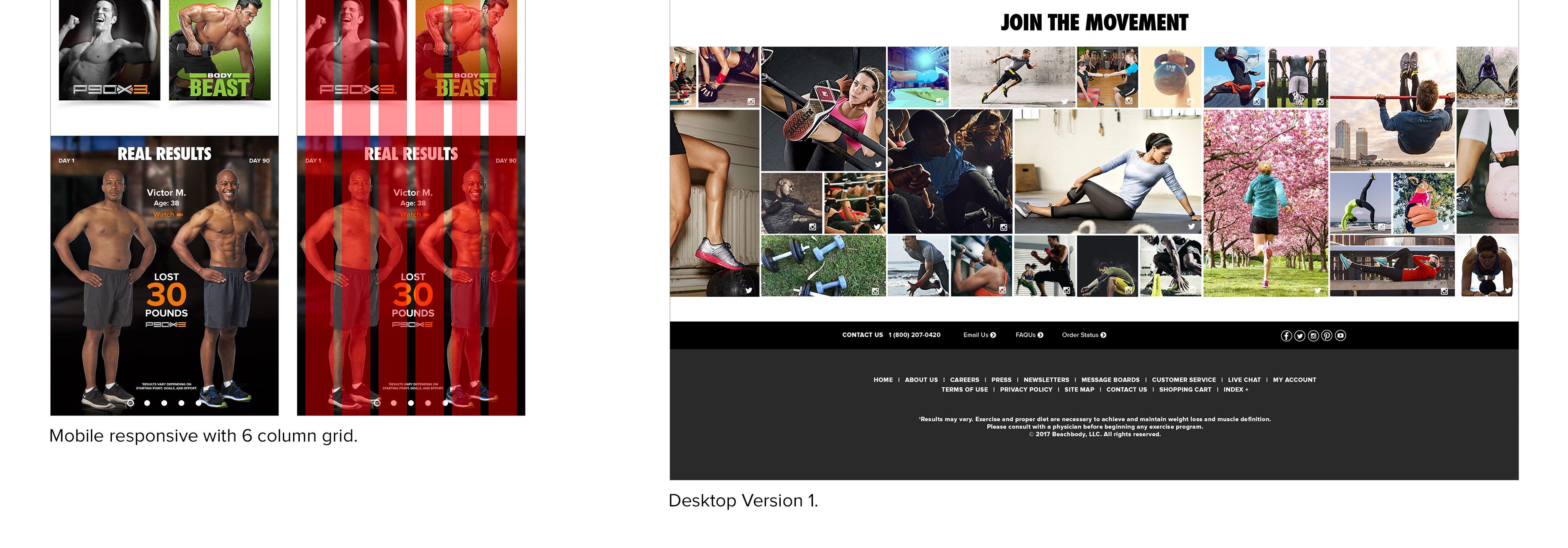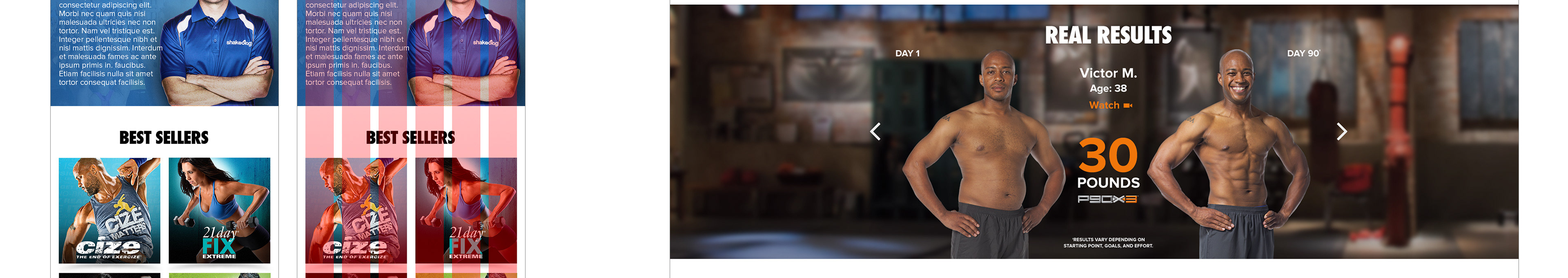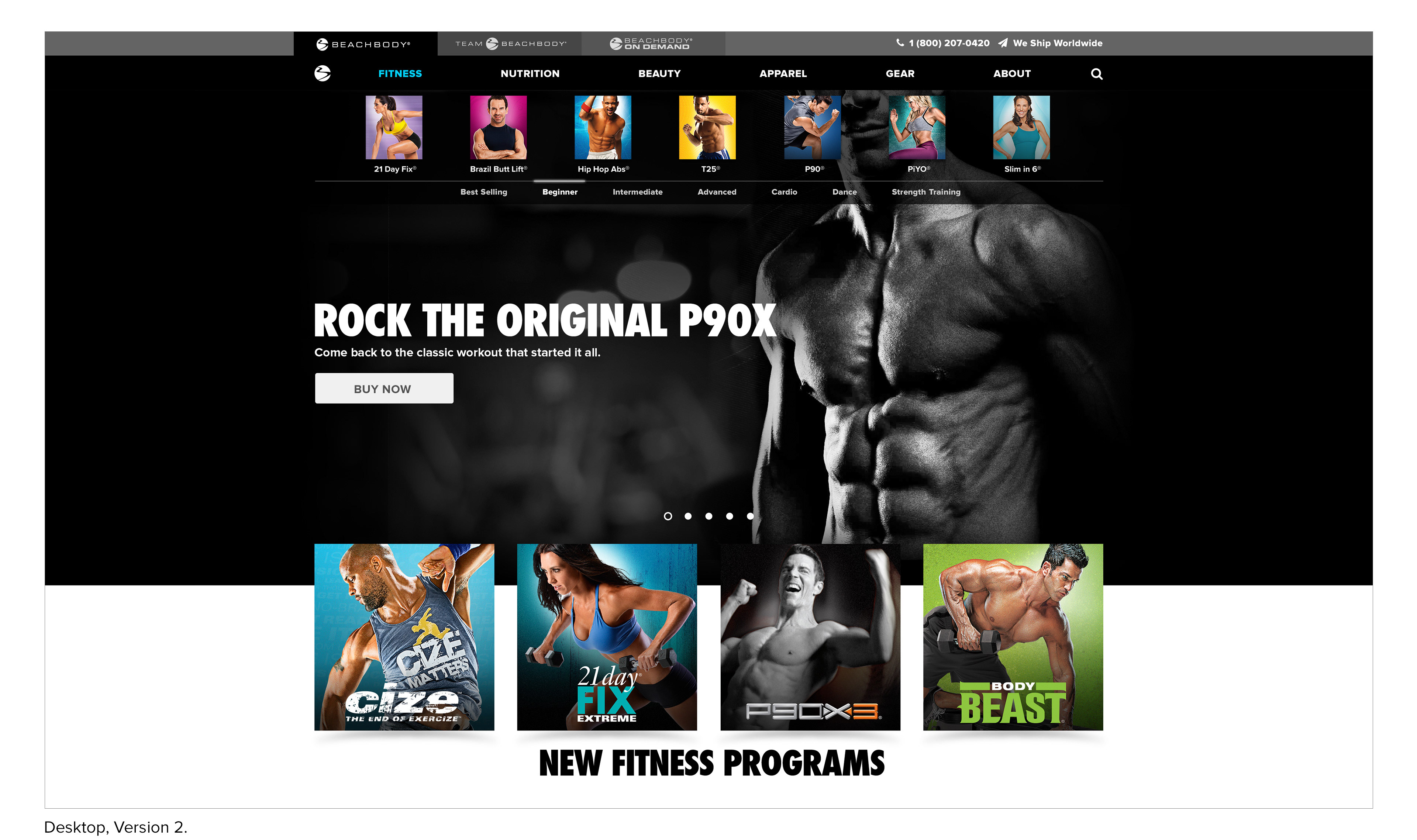This was a project to get the ball rolling on a Beachbody redesign and we needed to pitch ideas quickly. Started with a simple style guide. Used a drop-down product sorter, similar to Apple, in the navigation where the user could sort through categories according to workout level. I saw a question funnel on another site and thought it would work well against all the before and after photos. Hope you like!