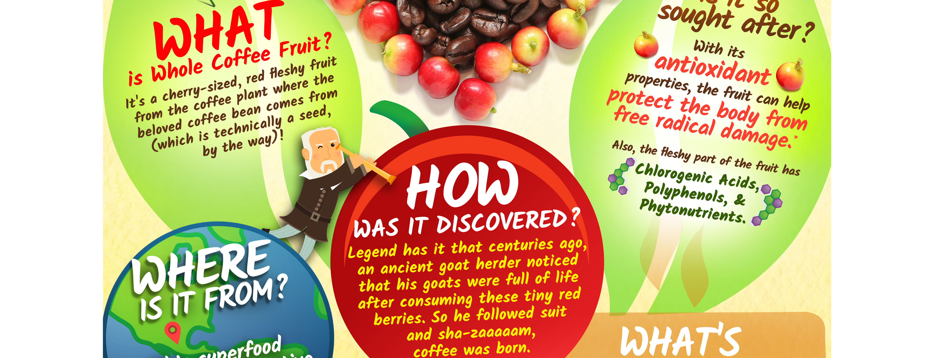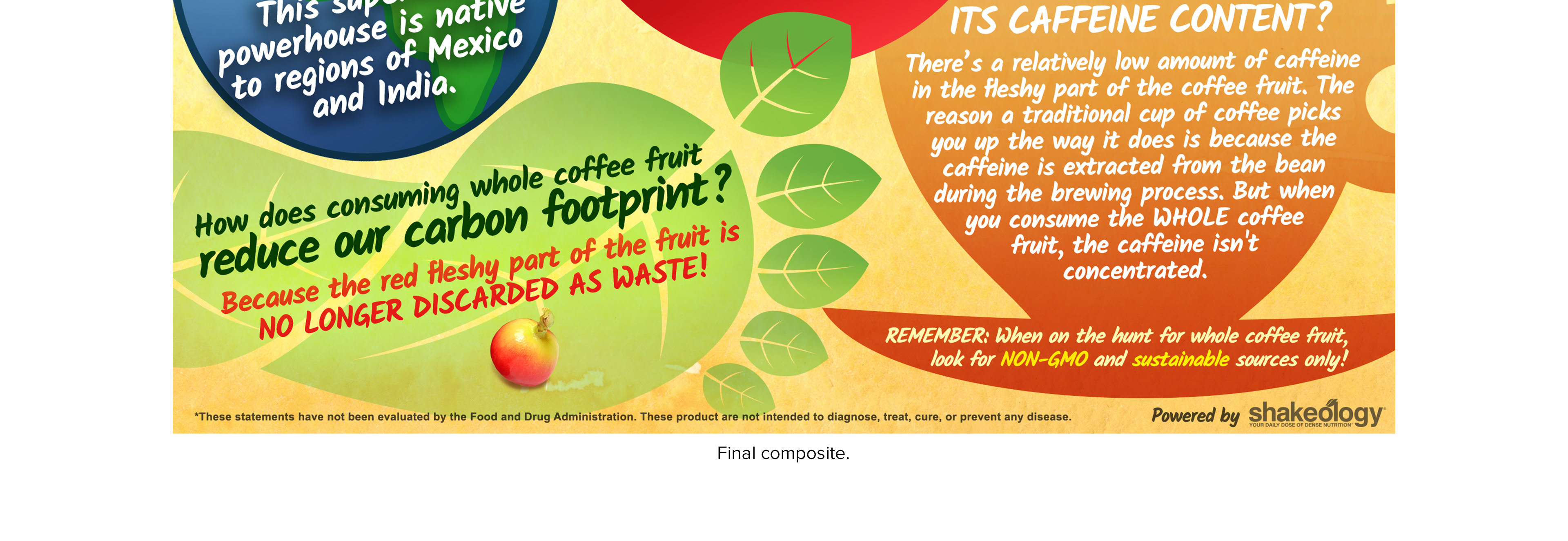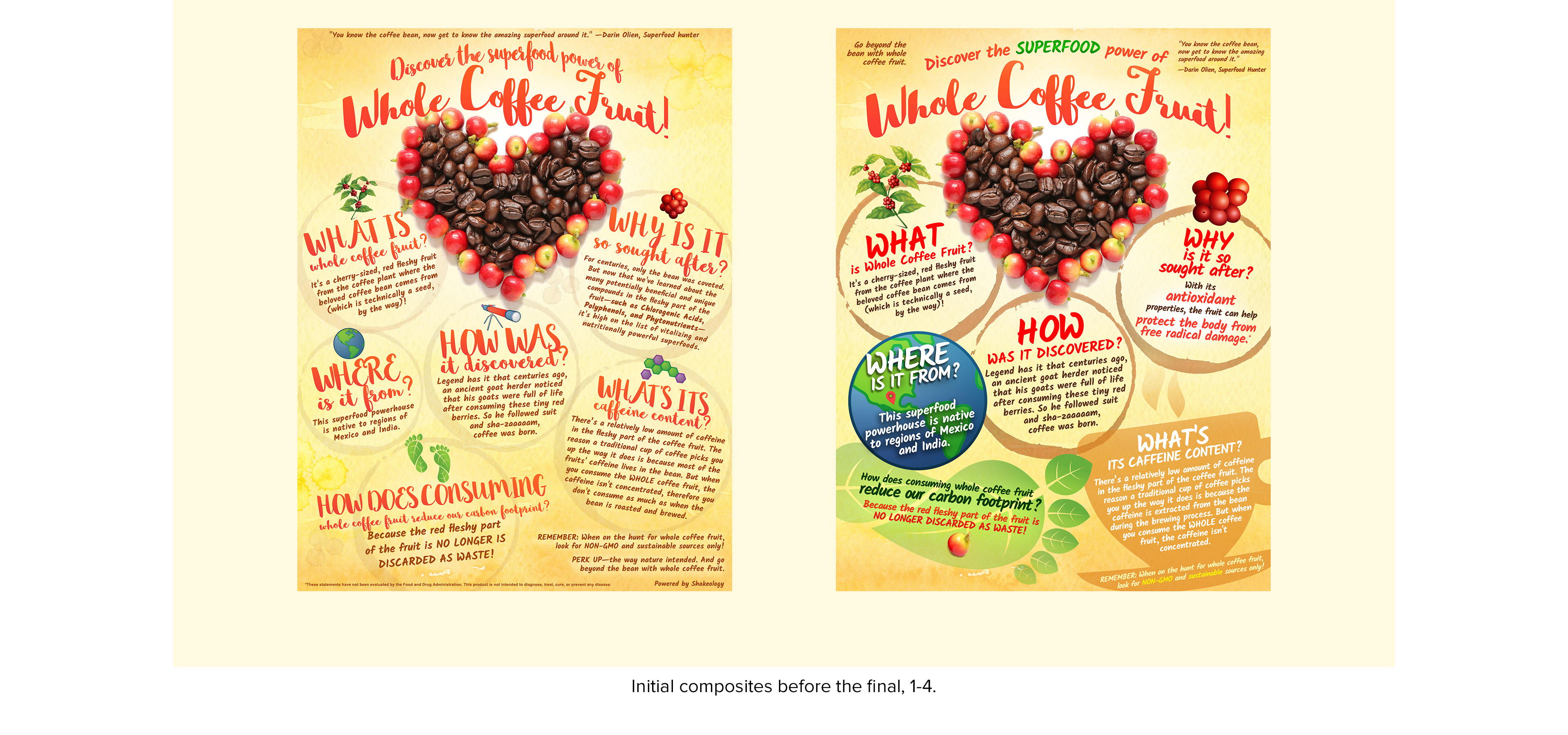 This was an infographic poster, spreading to word on the benefits of whole coffee fruit which was about to be introduced as a key ingredient in Shakeology. Very quick turn around as I had only a few days to get this published with the help of a copywriter. Hope you like!
