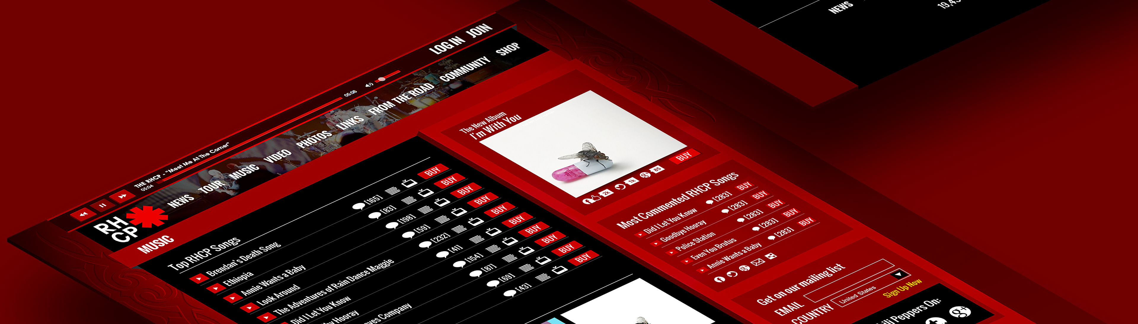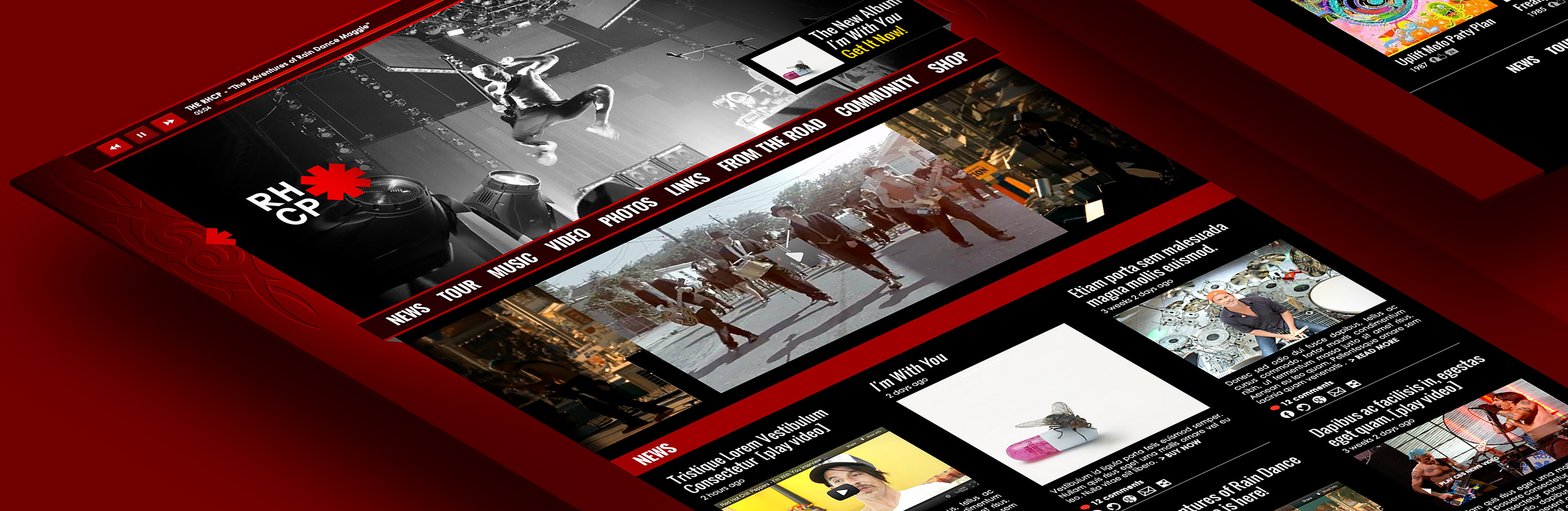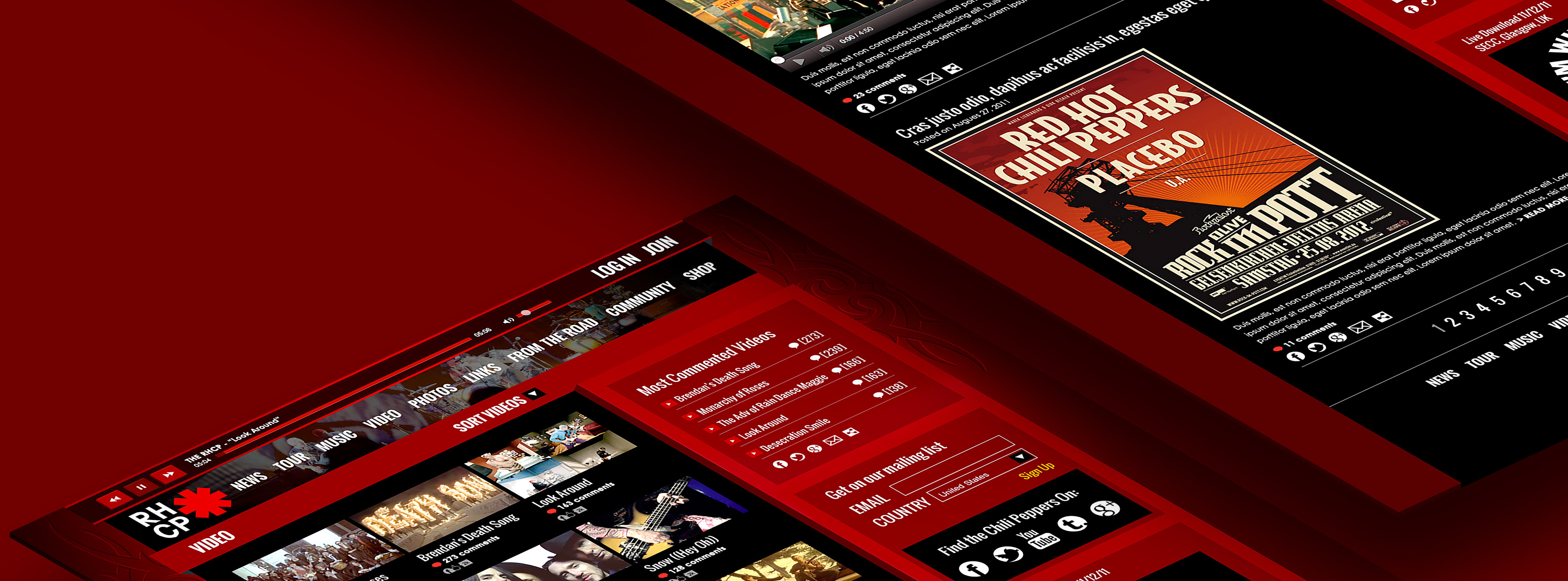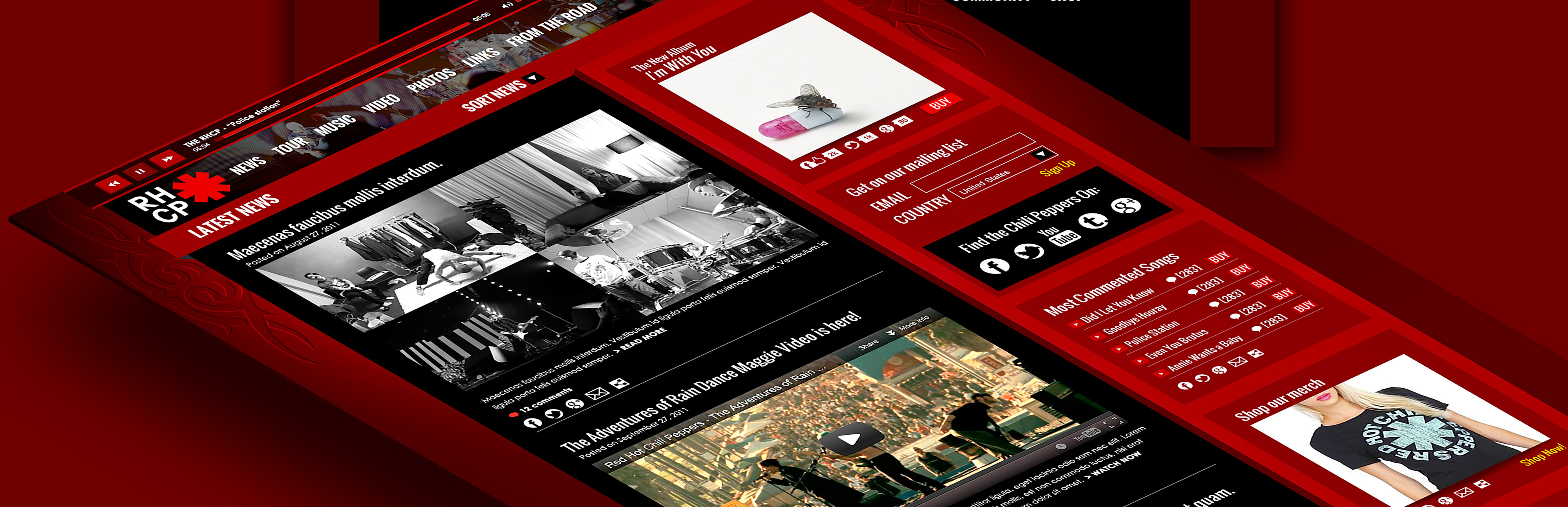 This was the Red Hot Chili Pepper's responsive site design. Decided to add a few 3D effects to make some of the content pop a bit more. Easier to see the 3D from the perspective views below. Fun project. One of my favorite bands growing up so it was a treat. Hope you like!