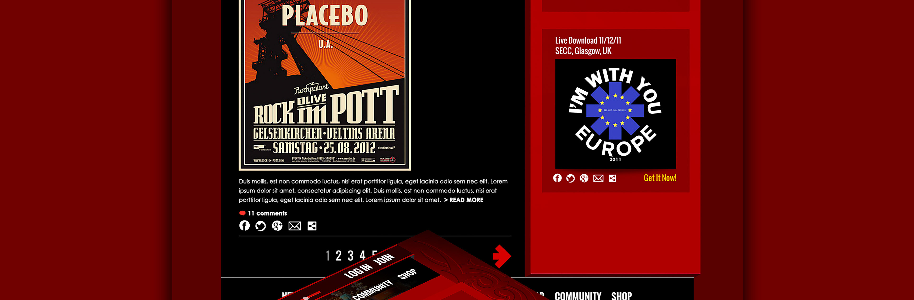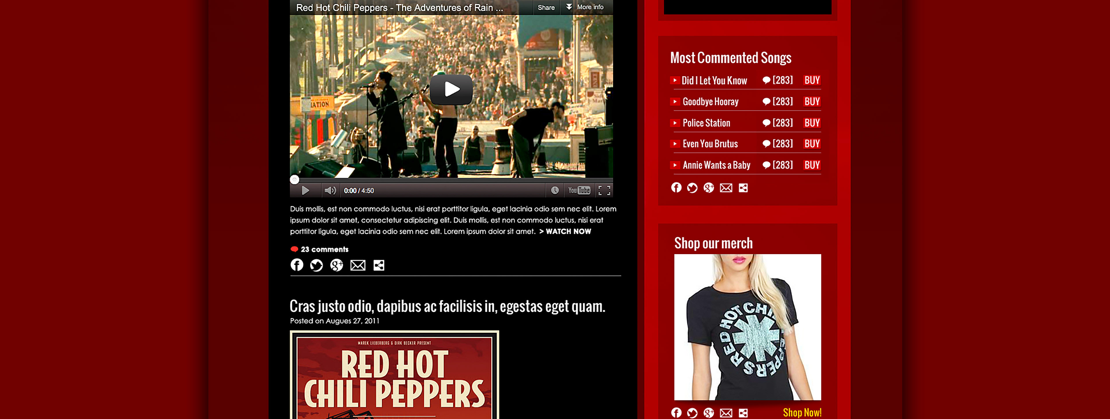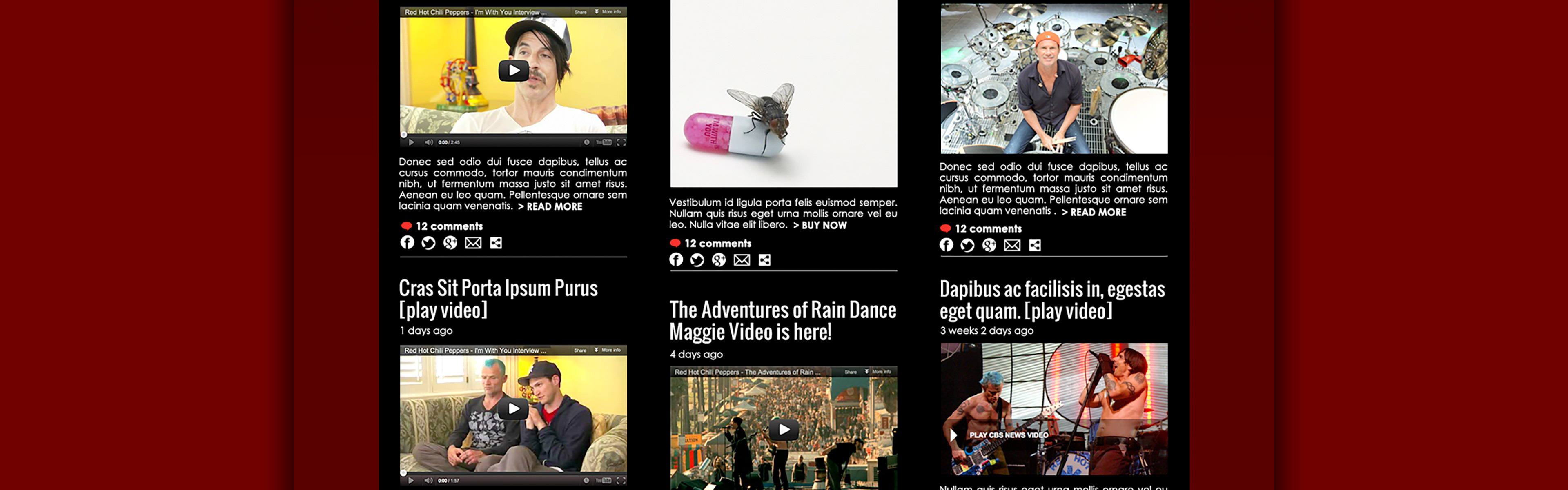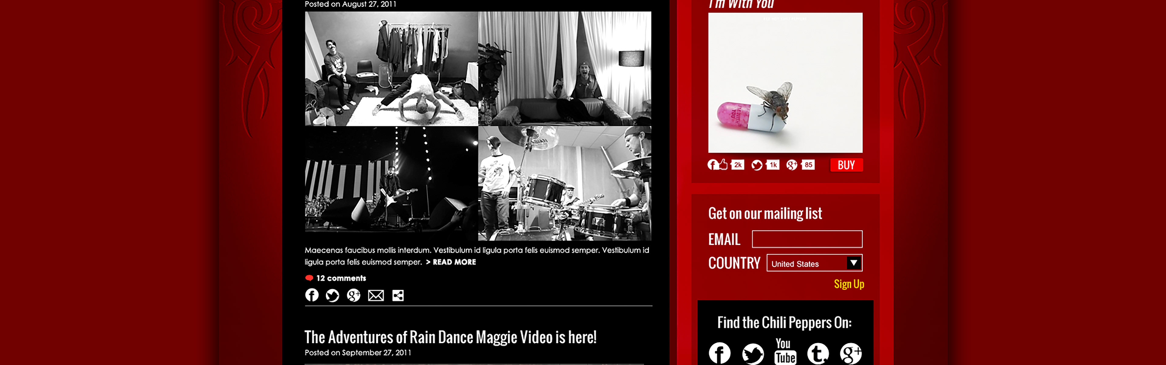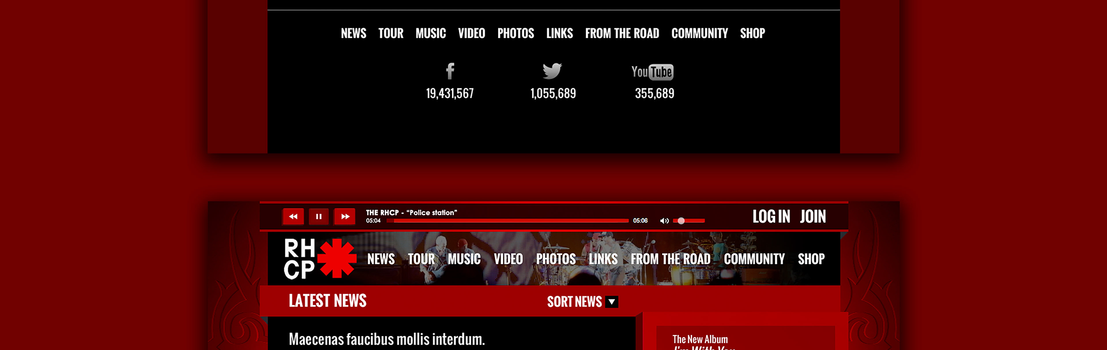 This was the Red Hot Chili Pepper's responsive site design. Decided to add a few 3D effects to make some of the content pop a bit more. Easier to see the 3D from the perspective views below. Fun project. One of my favorite bands growing up so it was a treat. Hope you like!